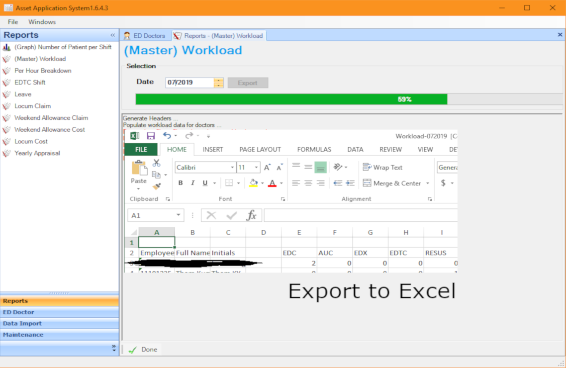 - Each month, work schedule information, staff performance data, are re-entered into Excel spreadsheets.